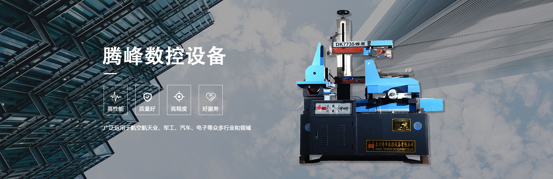 泰州騰峰數控設備有限公司地處風景秀麗、交通便捷的泰州經濟開發區,東旁寧靖鹽高速、難靠寧通高速、北依寧啟鐵路。公司是生產精密數控機床的實力廠家,在生產過程中嚴格執行國家標準和生產工藝,各種原材料和配套件均選用國內外知名品牌,為國內外用戶提供結構完善,品質優良,功能齊全的數控電火花切割機床。騰峰數控的主要產品有:DK77系列電火花線切割機床(快走絲和中走絲)、數控設備專用高頻控制柜、電火花穿孔機、電火花成型機、CNC數控雕銑機和加工中心機等。本公司也可根據貴公司的要求定做超大型機床。精良的產品,實惠的價格和完善的服務,是騰峰數控的宗旨。本公司一直秉承“精于業 成于服務”的經營服務理念,為廣大客戶提供高品質的一站式服務。 <了解更多>